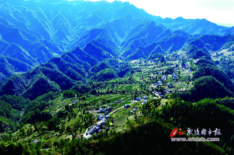 近日,彩叶林环抱着黔江区小南海镇荆竹村白茶基地和民居。