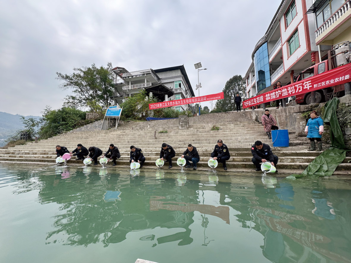 本报讯 (记者 田娟 文/图)为修复天然水域生态环境,丰富鱼类种群资源,12月5日,黔江区在阿蓬江和小南海开展了增殖放流活动。