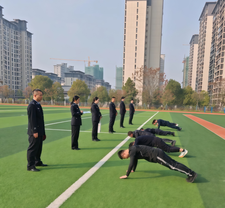 基础体能达标测试环节,全体参考队员参加4×10折返跑、立定跳远、俯卧撑(如上图)、1000米跑等项目,在考核中展现出过硬的体能素质。