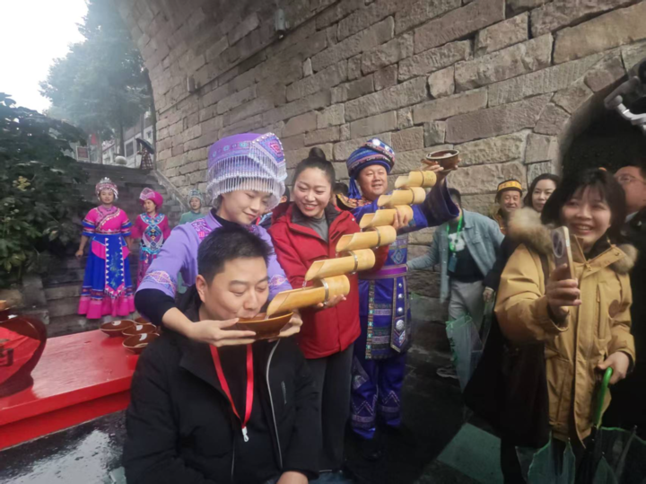 本报讯(记者 谭鹏 文/图)12月20日至21日,川渝非遗保护联盟组织成员单位代表、非遗保护单位代表,以及非遗代表性传承人等100余人,前往重庆市黔江区濯水镇、小南海镇等地,考察渝东南文化生态保护区建设经验与成果。