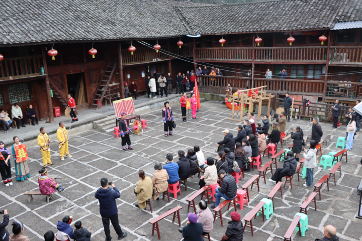 濯水,这座融合土家吊脚楼群落与徽派建筑风格的千年古镇,如今已成为非遗活态传承的生动样板。代表们沿着青石板路,实地调研了傩戏、后河古戏等非遗项目的传承展示情况。