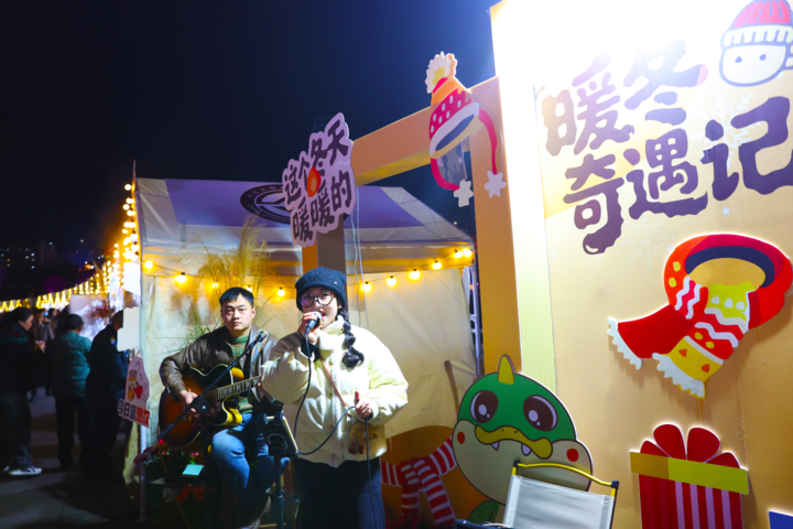 市集近100家商店,融合了手工创作、非遗体验、书画艺术、美食创作等项目,加上每晚一场文艺演出,奉献出一场文旅盛宴,吸引了众多游客和市民,让寒冷的冬夜“热火”起来。
