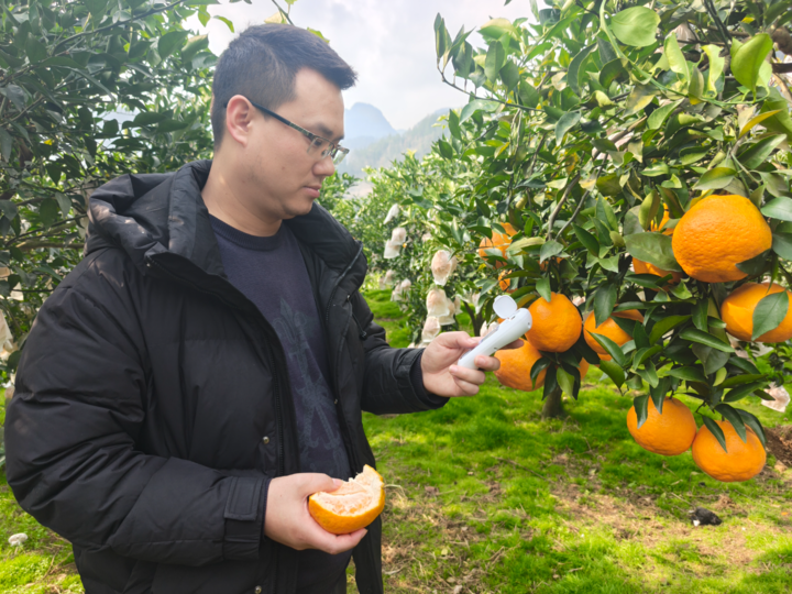 “以前我们判断果子甜不甜,全靠经验,现在有了这个‘宝贝’,甜度一目了然。”赵明明介绍,当地耙耙柑种植户通过糖度计检测,可以掌握不同地块、不同树龄果树的果实品质差异,为分类定价提供依据,也能发现种植管理中需要改进的地方。