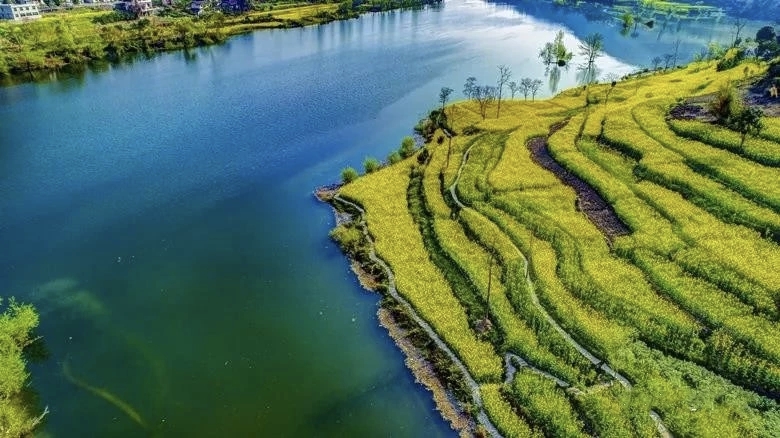 “共营”谋发展,振兴谱新篇。在守护一江碧水的基础上,阿蓬江镇通过“三方议事”共商绿色发展路径,敲定了生态观光、休闲垂钓、民宿体验、特色种植的产业发展方向。镇长陈兵介绍:“我们依托阿蓬江的生态优势,引导村民发展精品民宿和生态果园,打造沿江徒步路线,让游客既能欣赏江景,又能体验乡村生活。”