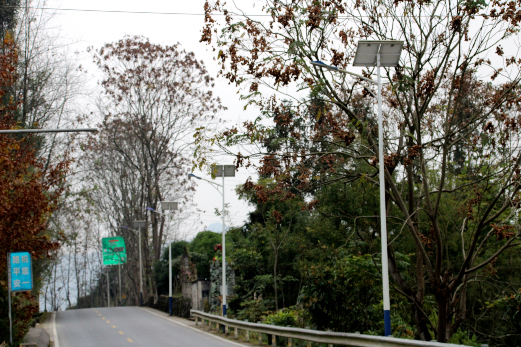 老319国道关后社区段,是连接多个居民小组、通往镇中心的主干线。数年前,为改善村民夜间出行条件,当地在此安装了太阳能路灯。然而,随着电池老化、部件损坏,这些路灯逐渐“罢工”,整条路陷入黑暗。