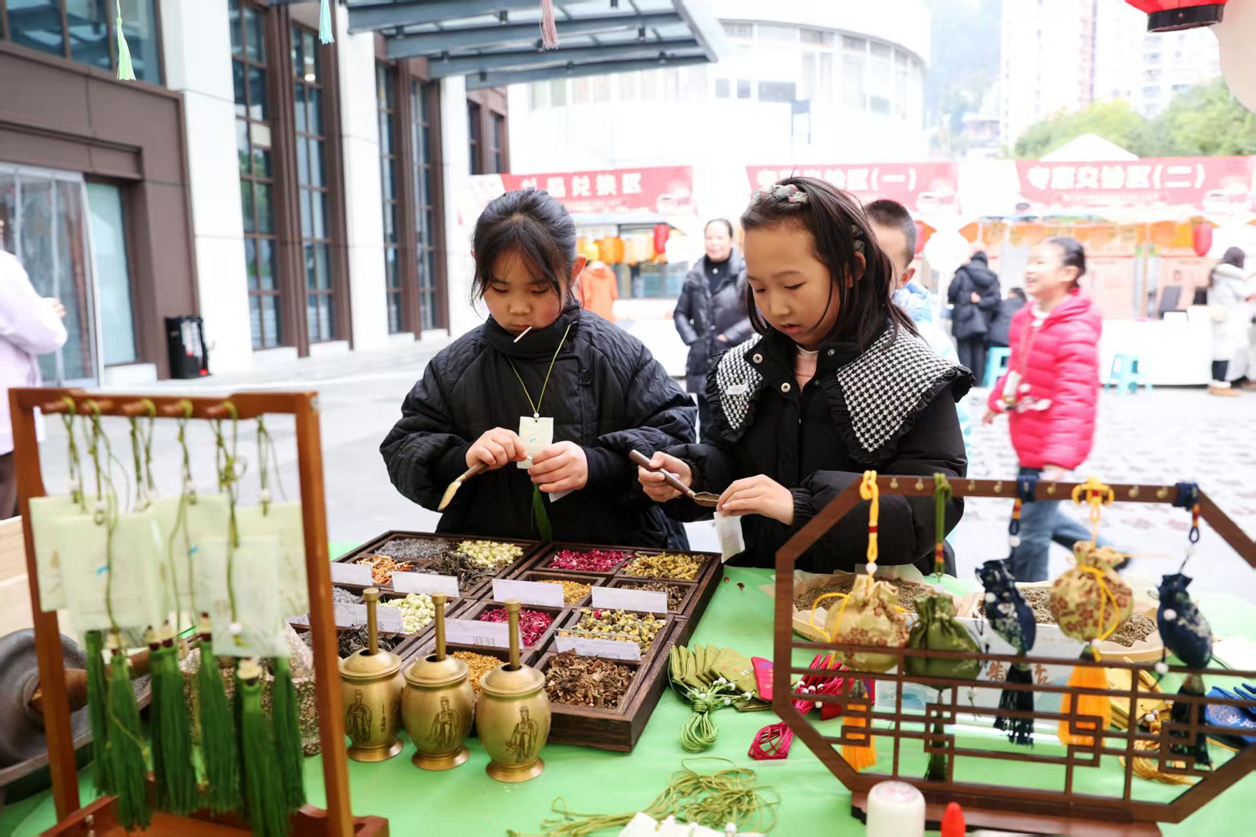 小朋友体验制作中草药香囊