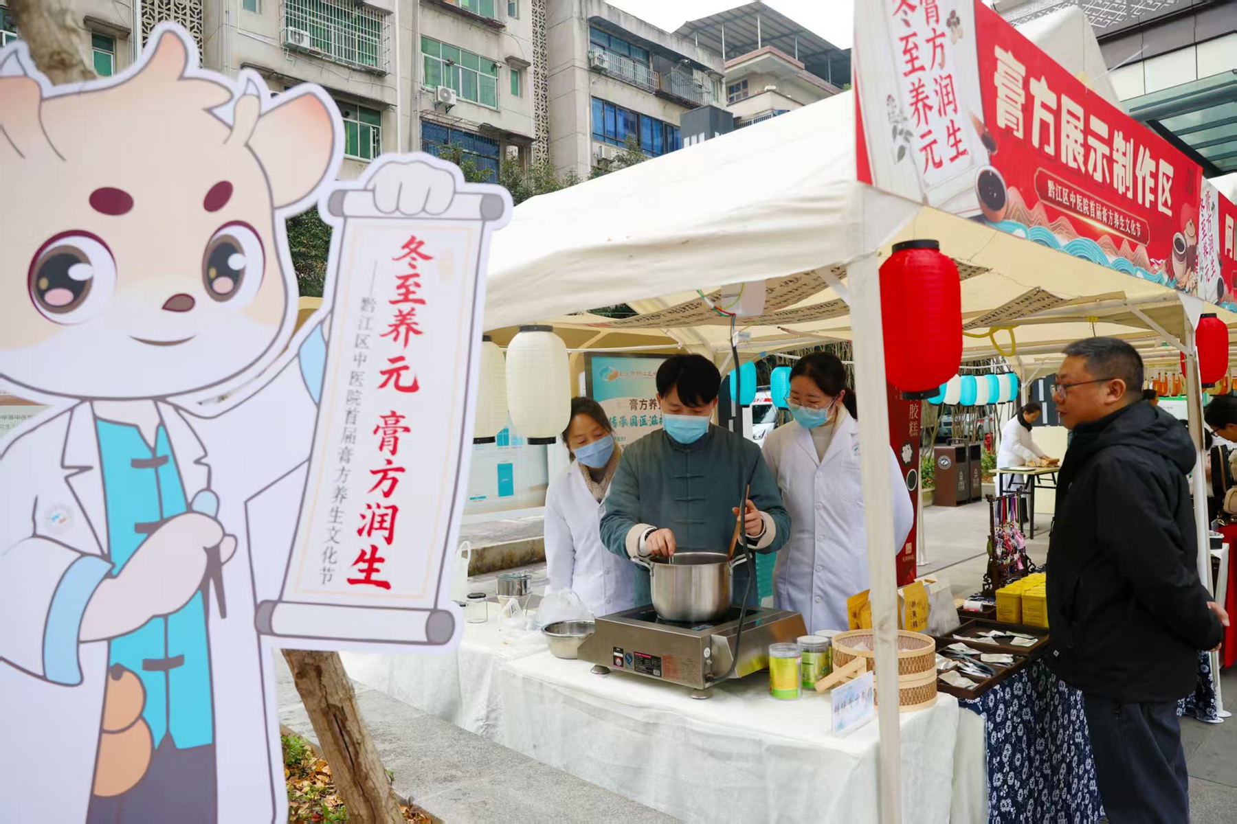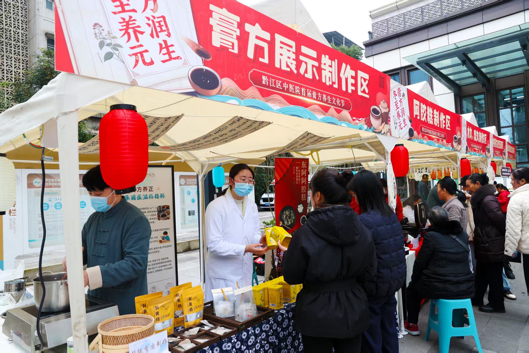 近日,黔江区中医院举办首届膏方养生文化节。膏方是冬季养元润生的传统中药补品。医务人员现场制作膏方,让市民了解传统膏方制作技艺,并设置特色中医体验区,让市民通过体验制作艾条、香囊,品尝中药养生糕点、中药代饮茶等活动,感受传统中医药的神奇和魅力。同时,开展名中医义诊活动,为市民把脉问诊,辨证施治。