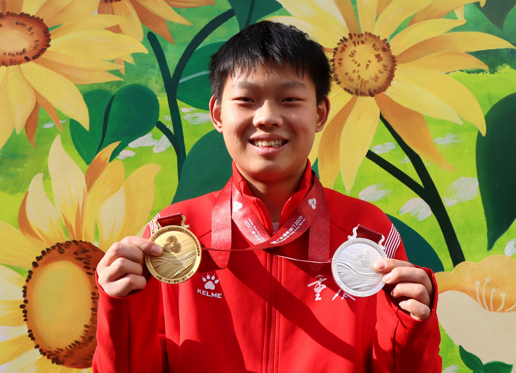 王世豪回到家中来不及坐下,迫不及待地打开行李箱,取出1块金牌和1块银牌。“奶奶,这黄色的是金牌、白色的是银牌!”周华杰双手摸着奖牌,心里乐开了花,双眼笑成了一条缝,习惯性地向孙子伸出大拇指说:“这是奶奶在电视上看到运动员胸前挂的金牌、银牌,想不到你也能拿回来两块。世豪,奶奶给你点赞!”