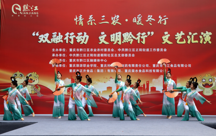 本报讯(记者 李诗素 文/图)12月27日,黔江区正阳街道以“双融行动·文明黔行”为主题,举办“情系三农 暖冬行”文艺汇演,为辖区群众送上一场接地气、有温度的文化盛宴。