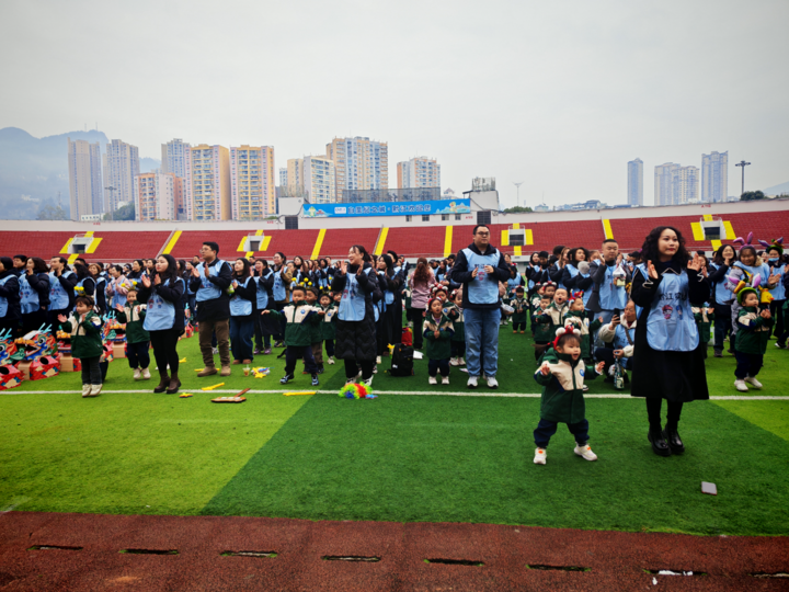 本报讯(记者 田丹 文/图)运动绘就童年底色,陪伴浇灌成长之花。在2026年新年即将到来之际,为让幼儿在运动中强健体魄,在互动中感受亲情温暖,12月29日上午,黔江区实验幼儿园“一起‘趣’运动,快乐迎新年”亲子运动会在区体育场热闹启幕。