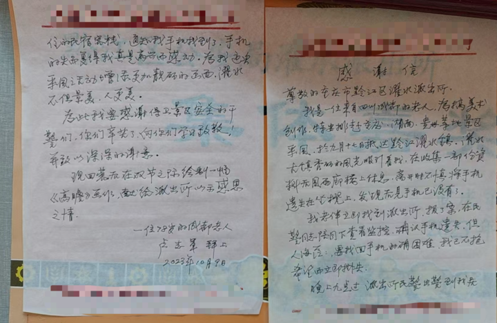 但黄友奎和队友并未放弃,最终在景区附近找到了捡手机的居民,并第一时间将手机送到老人居住的酒店。