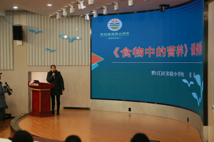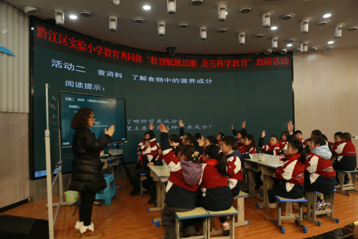 科学素养的提升,离不开扎扎实实的课堂教学。实验小学教师胡晓和三年级1班的同学们首先登上讲台,带来《食物的营养》课例研讨展示。胡老师从黔江特色美食的情境引入,引发学生对食物营养的大胆猜想,通过多个实验探究食物中的营养成分,用大量证据验证猜想,并联系生活实际,实现学以致用,充分体现了科学教学的思维型特质。