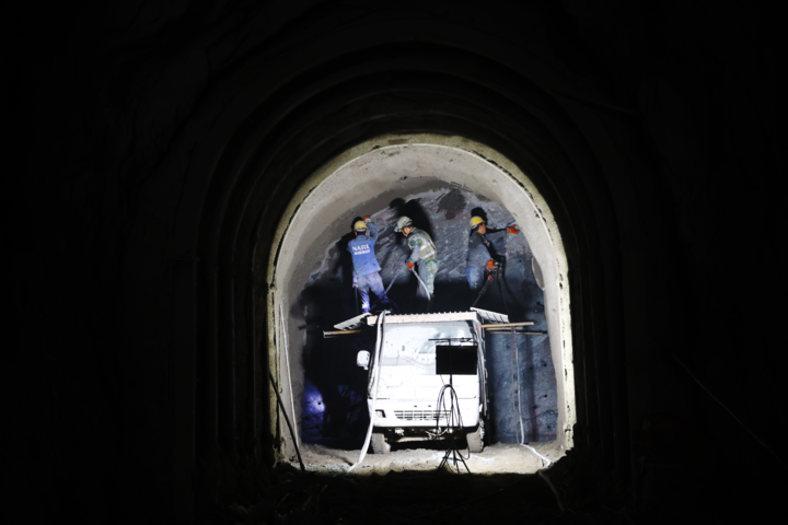 日前,工人在黔江区甘溪水库建设工地引水隧道内施工。位于黔江区五里镇的甘溪水库是一座具有农业灌溉和乡镇供水的综合效益的水利工程。工程建成后,可解决蓬东、五里两乡镇1.4万人的生产生活用水和7600多亩耕地、4.7万头牲畜的供水。工程于去年下半年开工,建设工期为18个月。新年伊始,工人们加班加点建设,确保按时按质完成工期。