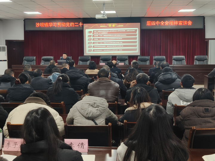 近日,黔江区沙坝镇召开学习贯彻党的二十届四中全会精神宣讲会,邀请区委宣讲团成员作专题辅导报告。机关全体干部职工、各村(社区)干部及驻村工作队、镇级部门负责人齐聚一堂(如图),共同领悟全会精神核心要义,凝聚乡村振兴奋进力量。
