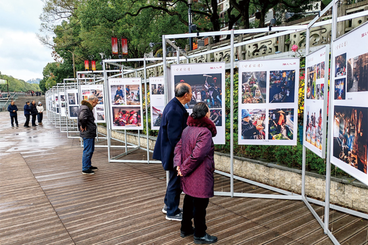 市民驻足观看摄影展览
