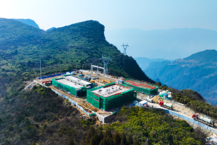 日前,工人在黔江区金洞乡风储一体化项目升压站建设工地施工。