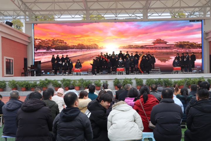 汇演在一片热烈的掌声中拉开帷幕。该校民族传统体育武术社团带来的特邀节目《祥狮献瑞·武贺新年》率先登场,随后,高一22班学子演绎的《天地龙鳞》以悠扬的旋律与深情的演唱,拉开了节目展演的序幕,歌声中满是对中华文脉的尊崇与对家国的挚爱。