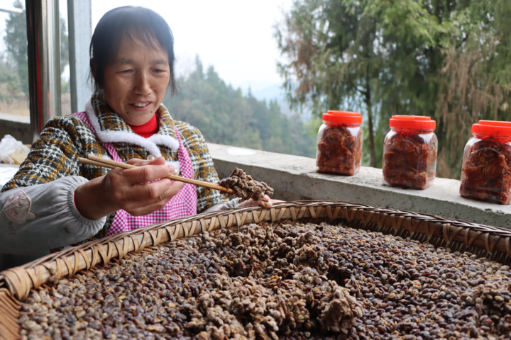 随着新年的临近,闲不下来的李树荣又将自家种出的农作物,制作成豆豉、霉豆腐、红薯粉售卖。街道办事处工作人员还会帮助她进行直播卖货。