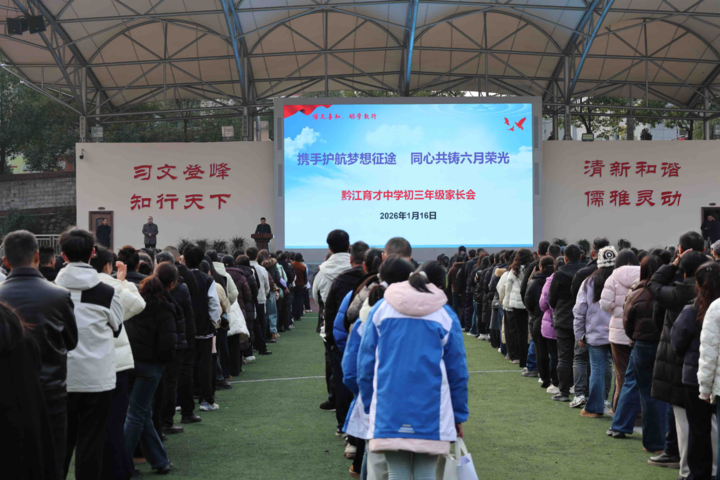 本报讯(记者 王巧西 文/图)1月16日下午,黔江育才中学召开初三年级家长会,进一步加强家校沟通,形成携手护航的家校合力,助力初三年级学子积极备战中考。