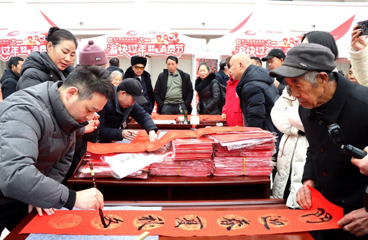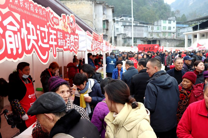 “渝快过年”消费节展台专区同样人气爆棚,特色农产品展台前人头攒动,新鲜采摘的耙耙柑、风味独特的羊扣、蜂蜜、土鸡蛋等优质产品琳琅满目,吸引着乡亲们驻足挑选,脸上洋溢着新年的喜悦和幸福,背着或提着沉甸甸的年货在欢声笑语中满载而归。