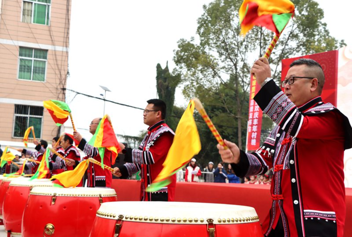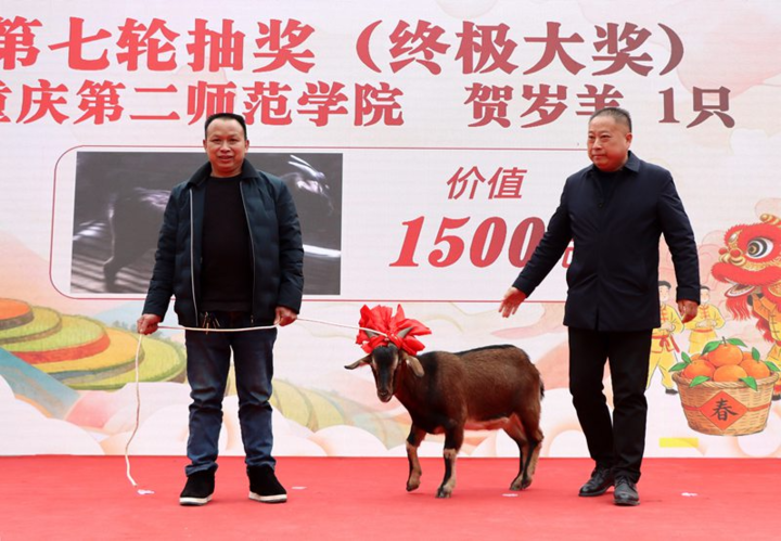 活动现场,喜庆氛围扑面而来。6名村(社区)党组织书记伴着《欢聚一堂》的乐曲击鼓开场,奏响新年的豪迈乐章;舞台上专业演职人员和群众自编自演的节目,赢得台下观众阵阵掌声;老手艺人的器物展示与新农人的特色产业走秀,焕发出乡村全面振兴的蓬勃生机;中途穿插的抽奖环节更是将活动推向高潮,当互助村一村民抽到一只“大活羊”的重磅奖品揭晓时,台下观众欢呼声、掌声此起彼伏。他激动地说:“没想到赶场来凑个热闹,还‘捡’到一只羊回家过年!”