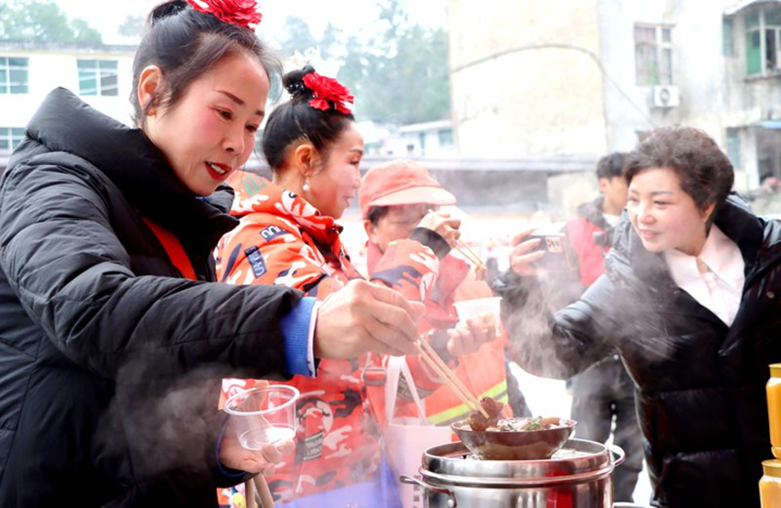 本报讯 (记者 李诗素 文/图)1月23日,黔江区黑溪镇暖意融融、欢声如潮,“寻味黑溪”品牌发布会暨欢庆丰年村晚活动盛大启幕。干部群众齐聚一堂,共赴丰年“村晚”文化盛宴,同享乡村振兴与农文旅融合发展的丰硕成果,见证“寻味黑溪”品牌闪亮登场。