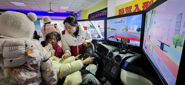 活动包含沉浸式研学,场景化教学等多个环节。在基地,通过志愿者的讲解,亲子家庭系统了解红十字运动起源、宗旨及培训基地功能布局,认识应急救护、消防安全、交通安全等核心体验模块。在场景体验中,体验模拟地震、火灾逃生、交通事故、醉驾模拟等实景项目,通过“场景式+情景式”教学,掌握灾害与意外发生时的逃生路径与自救动作。同时,志愿者还用通俗语言讲解火灾逃生技巧、日常安全规范,演示基础急救操作,让孩子与家长在互动中牢记“先报警、保自身、巧施救”的原则。