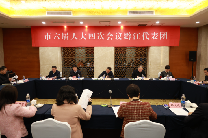 本报讯(记者 罗跃 文/图)1月27日上午,市六届人大四次会议黔江代表团在驻地宾馆会议室召开代表团全体会议。市人大代表罗成、骆高燕、刘毅、张艳、蒲继承、陈光海、强劲松等出席会议。