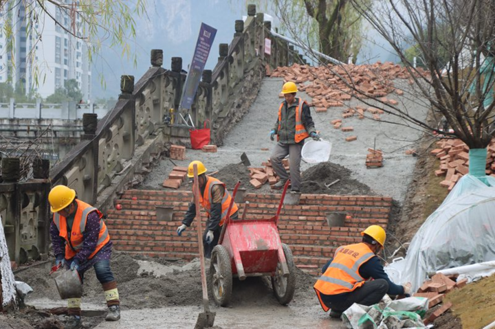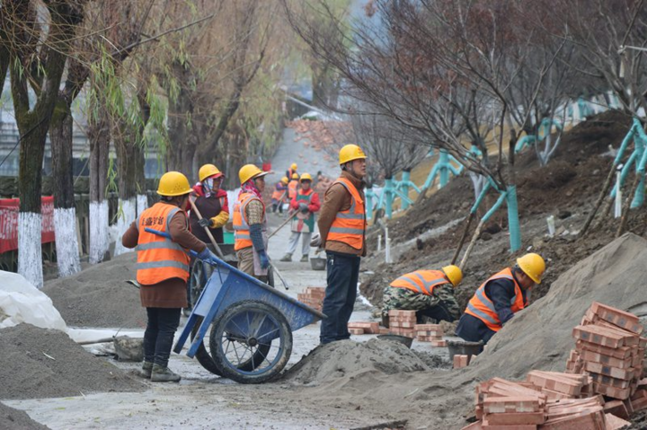 冬日的黔江河畔,施工热潮涌动。日前,记者走进黔江河河堤步游道施工现场,目之所及皆是忙碌景象:工人们分工协作,有的专注开展绿化苗木栽种,为岸线添新绿;有的埋头砌砖垒岸,筑牢慢行系统基底,各项工序有条不紊推进,一幅“攻坚冲刺筑美景”的画卷正徐徐展开。