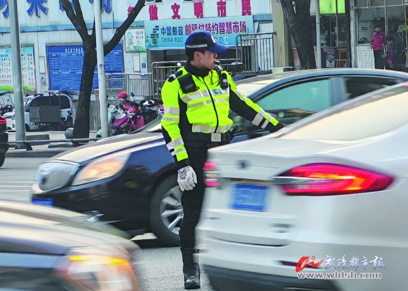 交警在城区交通要道执勤