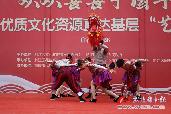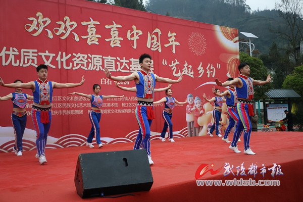 当天的活动融合了“节目表演+农特产品推介+互动抽奖”等形式,将群众文化送到百姓身边,进一步丰富了农村群众精神文化生活,推动优秀传统文化在基层传播。《我们美丽的家园》《巴渝龙舞》《盛世中国》《红盖头》《踏歌武陵》等歌舞,情景剧、小品、摆手舞、歌伴舞等形式,共同串联起了巴渝儿女对家园的热爱、对祖国的歌颂,更演绎了巴渝人对地方文化的传承。