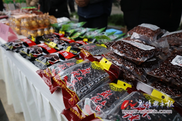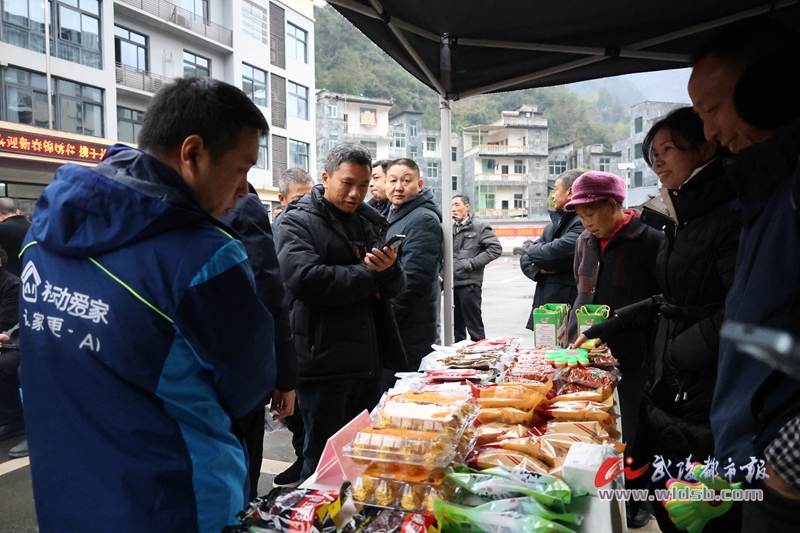 “尝必乐”渣海椒、“黄十娘”榨菜、羊肚菌、赤松茸、蜂蜜、土鸡蛋、羊扣、跑山鸡、大米、红美人柑橘等地道特色农产品“一站式”的推介形式,吸引了赶集百姓和演职人员的驻足,他们笑道:“把特产带回家,和家人们品尝一顿地道的黔江味儿年夜饭,是新年必备。”