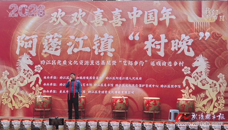 本报讯(记者 徐朝政 文/图)银蛇辞旧岁,福马贺新春。2月2日,黔江区阿蓬江镇群众大舞台热闹非凡,以“欢欢喜喜中国年”为主题的乡村春晚精彩上演。这场由区文旅委、阿蓬江镇人民政府主办,多家文化单位承办协办的文化盛宴,汇聚本土民间能人,以乡土味、民族风的精彩表演,为全镇干部群众送上新春祝福,也生动展现了阿蓬江镇文旅融合发展的新活力。