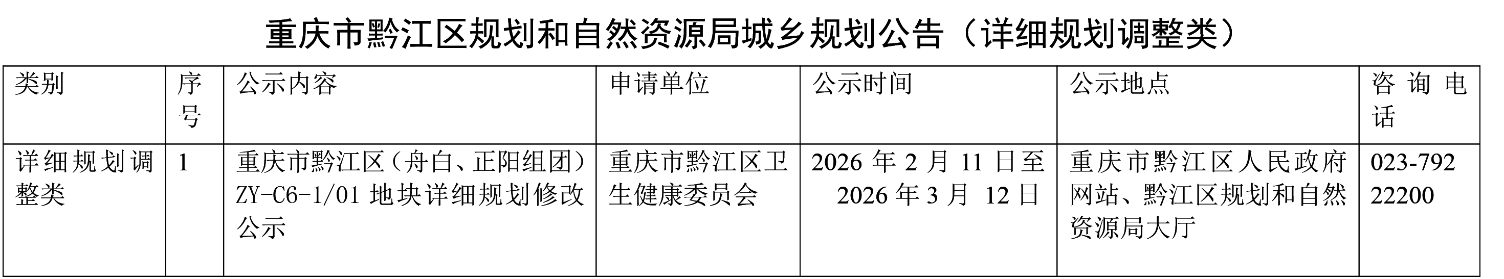 重庆市黔江区规划和自然资源局城乡规划公告(详细规划调整类)