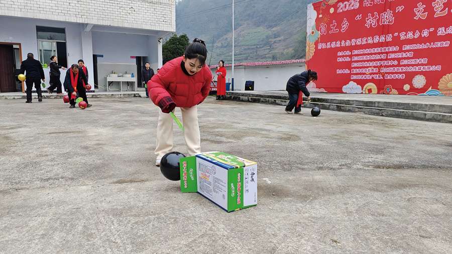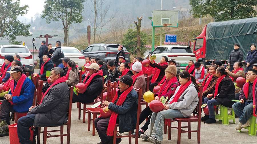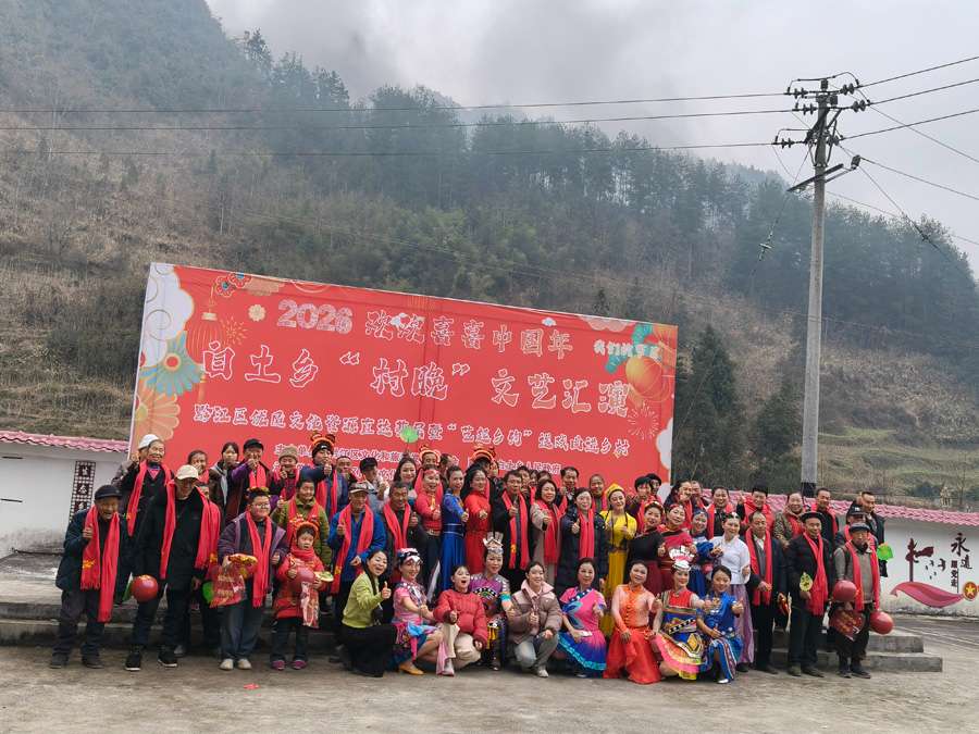 本报讯(记者 罗跃 文/图)银蛇辞旧岁,福马贺新春。为丰富乡村文化生活,传递新春美好祝福,凝聚乡村振兴精神力量。2月6日,一场由村民自编自导自演、以“欢欢喜喜中国年”为主题的乡村村晚,在黔江区白土乡金塘村文化广场如期启幕。