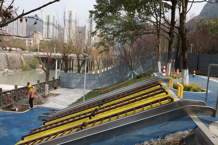 本报讯(记者 谭鹏 文/图)2月8日下午,记者在黔江城区污水处理厂便民桥至黔江大桥段看到,曾经破损的步道已被平整雅致的生态跑道替代,原本杂乱的草木如今错落有致。随着春节临近,这段承载着黔城人民共同记忆的河滨岸线已基本完成改造。