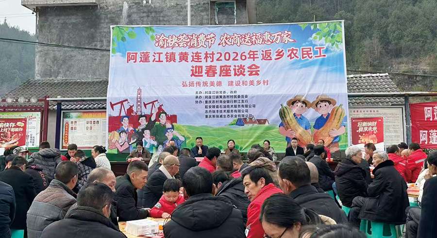 本报讯(记者 徐朝政 文/图)刨汤飘香迎新春,乡音乡情话发展。近日,黔江区阿蓬江镇黄连村以一桌热腾腾的家乡刨汤宴为媒,召开2026年返乡农民工迎春座谈会(如图),镇村干部与返乡农民工代表欢聚一堂,共叙乡情、共话发展、共谋未来,在浓浓年味中为乡村振兴凝聚奋进力量。