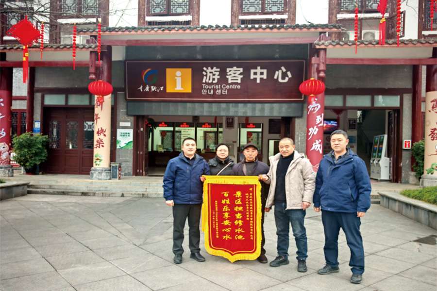 本报讯(记者 田丹 通讯员 付群超 文/图)近日,黔江区城南街道黑山社区正阳山邬家院子群众代表孙华成、张方健等,将一面写有“景区担当修水池 百姓乐享放心水”的锦旗,送至峡谷城旅游景区管理股份有限公司城市大峡谷景区(如图),由衷感谢景区切实为周边群众解决了长期以来的饮水难题。