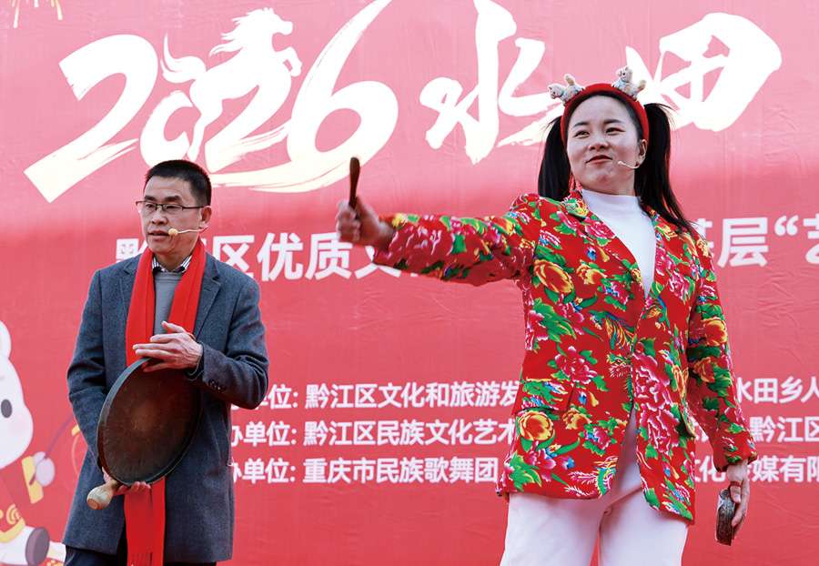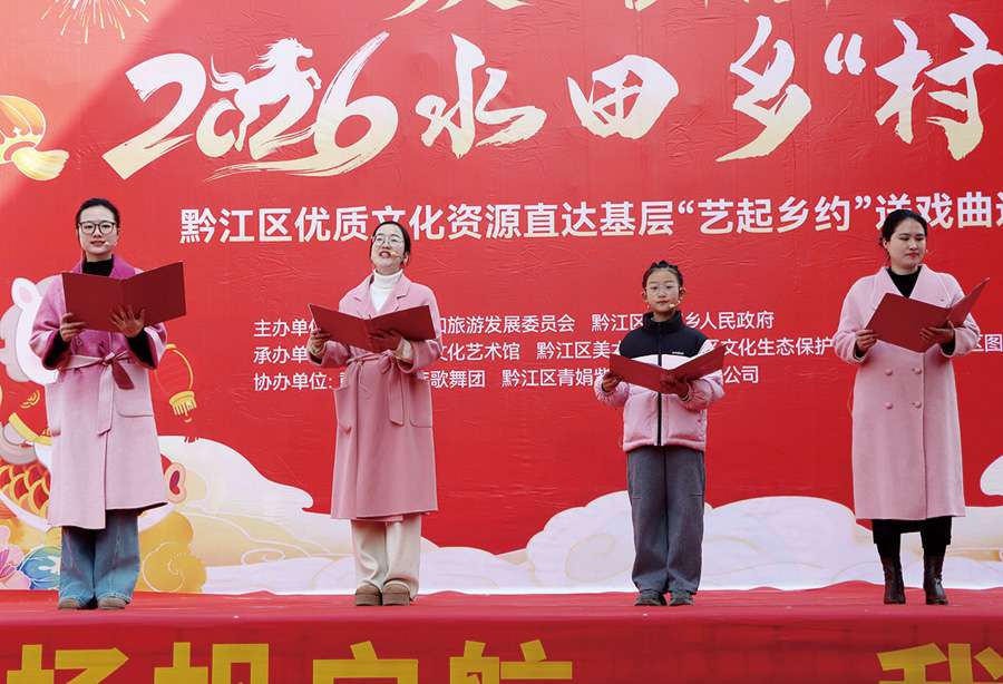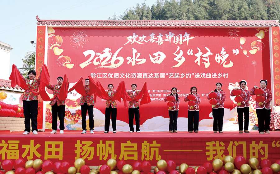 本报讯(记者 李诗素 文/图)2月11日,黔江区水田乡“2026年欢欢喜喜中国年‘村晚’活动”在龙桥村百姓大舞台精彩上演。由全乡四个村(社区)干部群众自编自导自演、裹满泥土芳香的喜迎新春文艺节目,展现出乡村淳朴民风与美好生活图景,让群众在家门口尽享一场年味十足的文化盛宴。