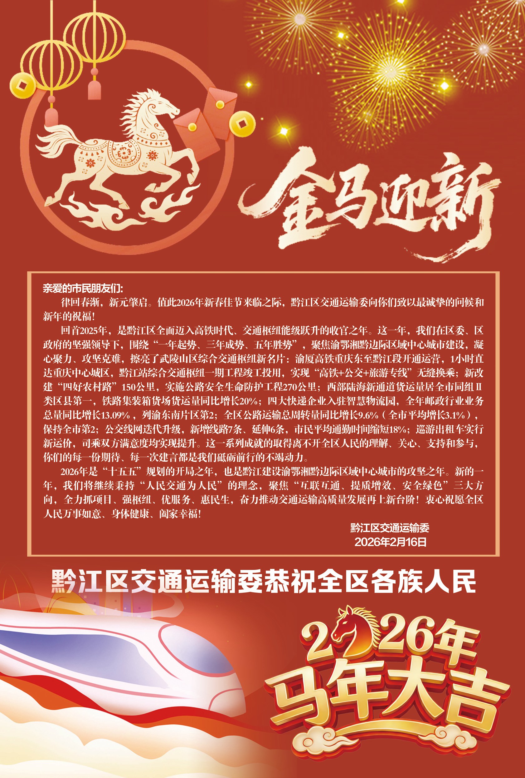 黔江区交通运输委恭祝全区人民2026年马年大吉
