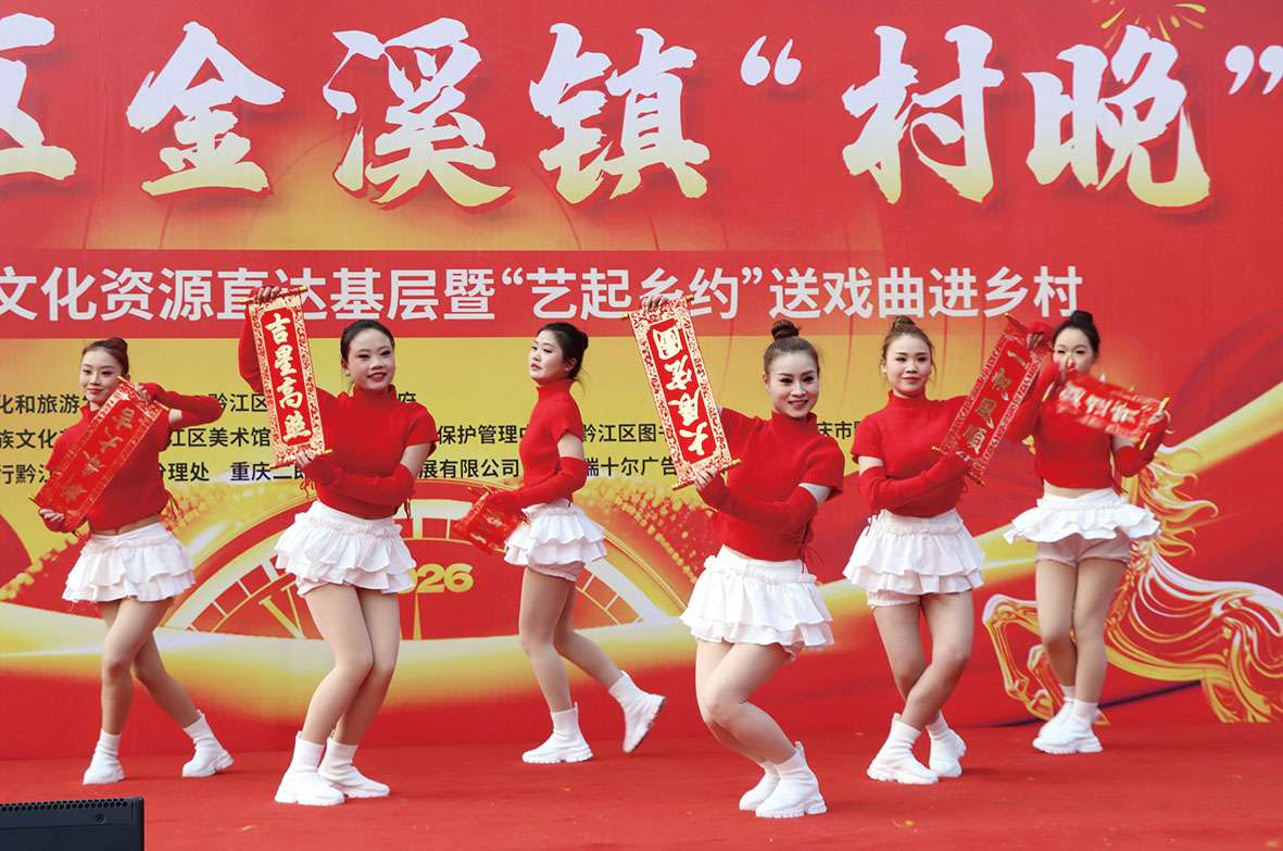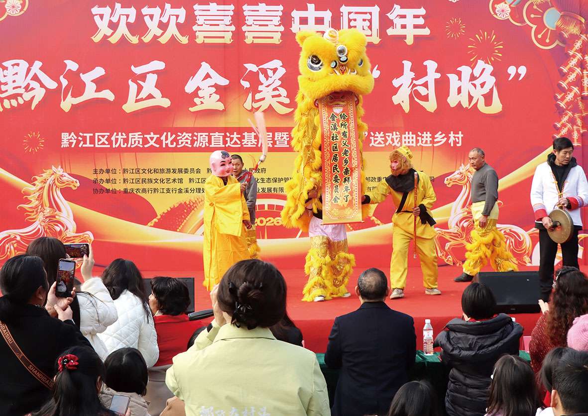 本报讯(记者 李诗素 文/图)2月13日,黔江区金溪镇“欢欢喜喜中国年”马年“村晚”精彩上演。全镇干部群众欢聚一堂,庆佳节、话团圆、看表演,处处洋溢着欢乐祥和的节日氛围。