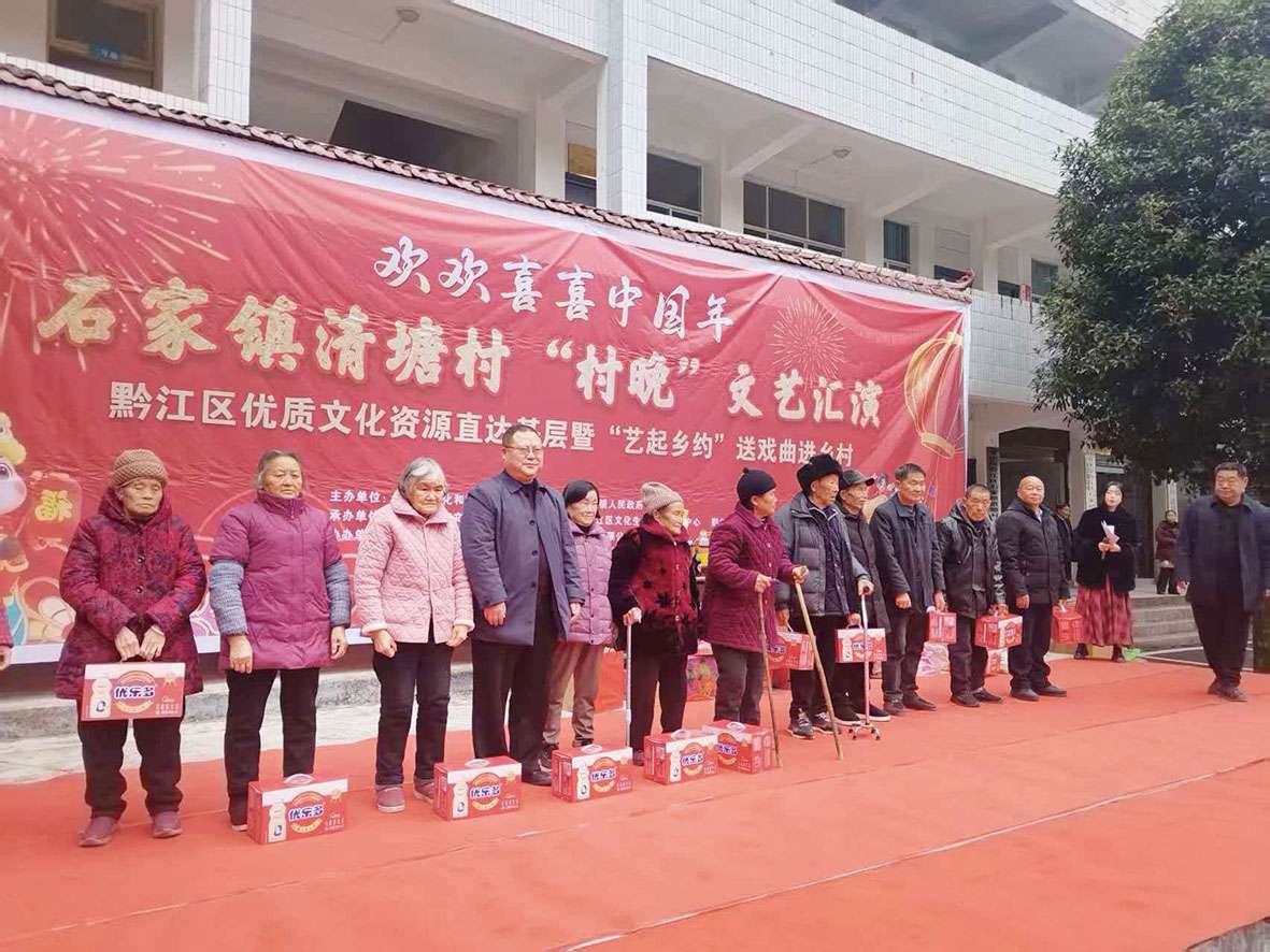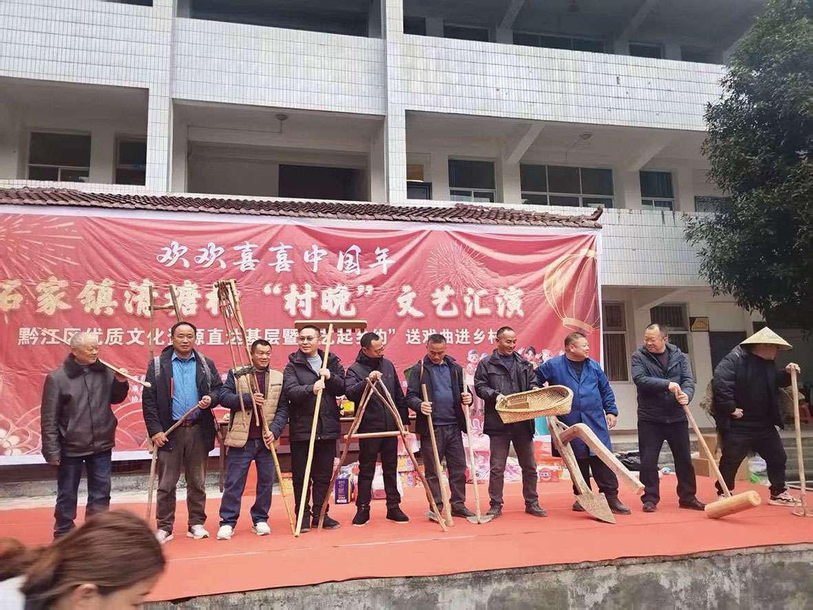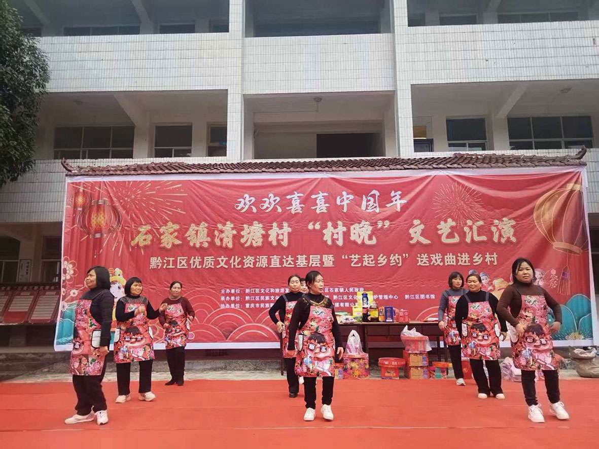 本报讯(通讯员 郑双敏 文/图)正月初一,由黔江区石家镇人民政府主办、清塘村村民委员会协办的清塘村“村晚”文艺汇演,在原渗坝学校热闹上演,为全村群众献上了一场年味浓郁、温馨暖心的新春文化盛宴。