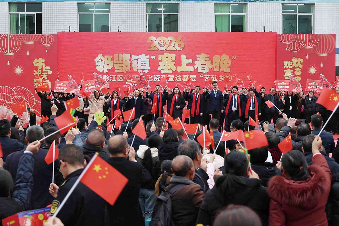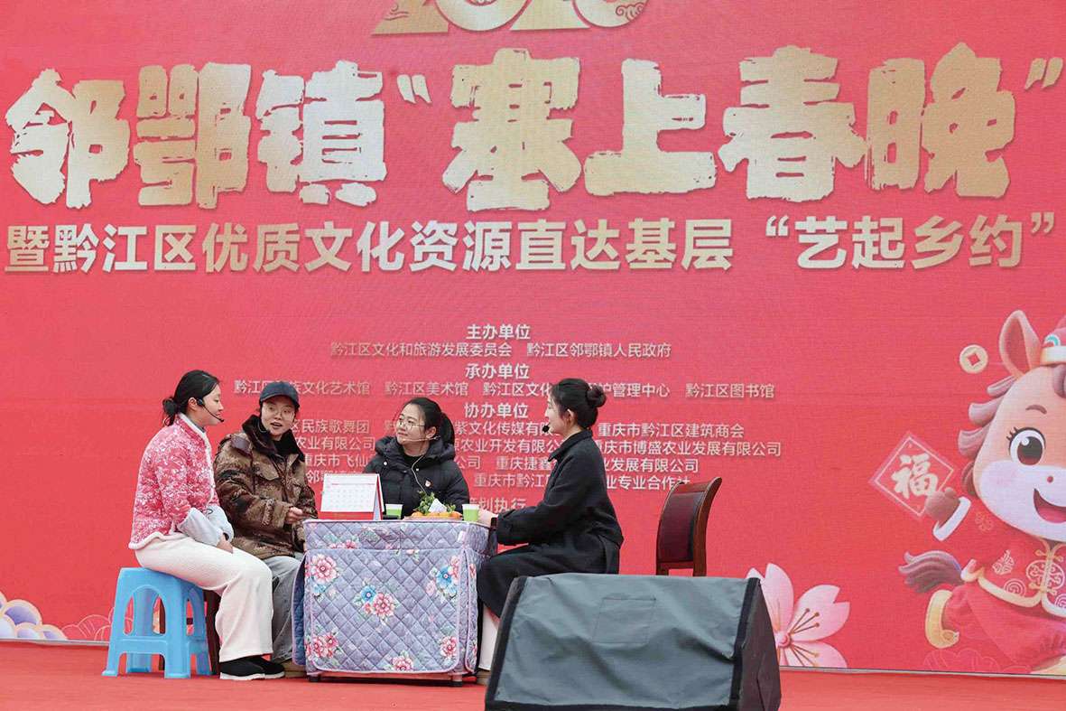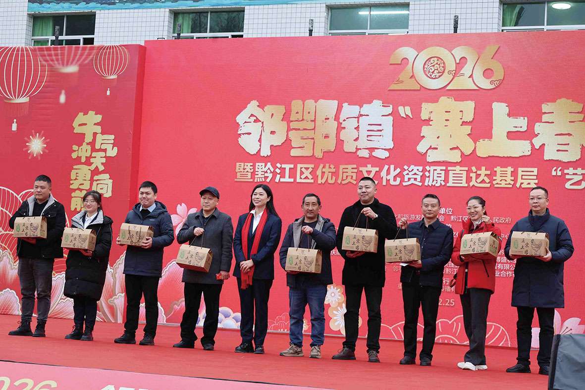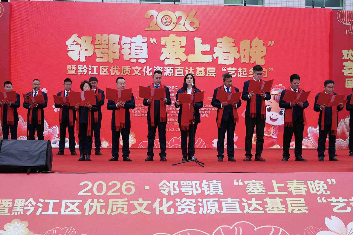 本报讯(记者 王巧西 文/图)2月25日,黔江区邻鄂镇处处洋溢着团圆祥和的节日氛围,一场由当地干部群众自编自演的文艺汇演——“欢欢喜喜中国年 牛气冲天勇向前”2026·邻鄂镇“塞上春晚”暨黔江区优质文化资源直达基层“艺起乡约”活动,在群众的热切期盼中拉开帷幕。