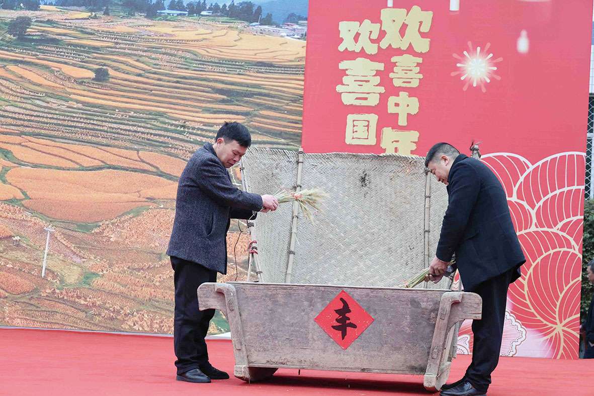 整场演出内容丰富、形式多样。通过《党恩如光》诗朗诵的真情讴歌、《正月反诈护平安》情景剧的生动警示、《天边》独唱的悠扬旋律以及《我们富了》小品的诙谐演绎等一系列精彩纷呈、贴近生活的本土节目,实现了文化娱乐与政策宣讲的有机融合。此外,高坪村“手打稻谷”呈现丰收画卷,艾坪村“群牛斗舞”演绎产业势头,五马顶社区“茶艺表演”展示藤茶韵味,将乡土文化魅力展现得淋漓尽致,引得现场观众掌声不断、喝彩连连。
