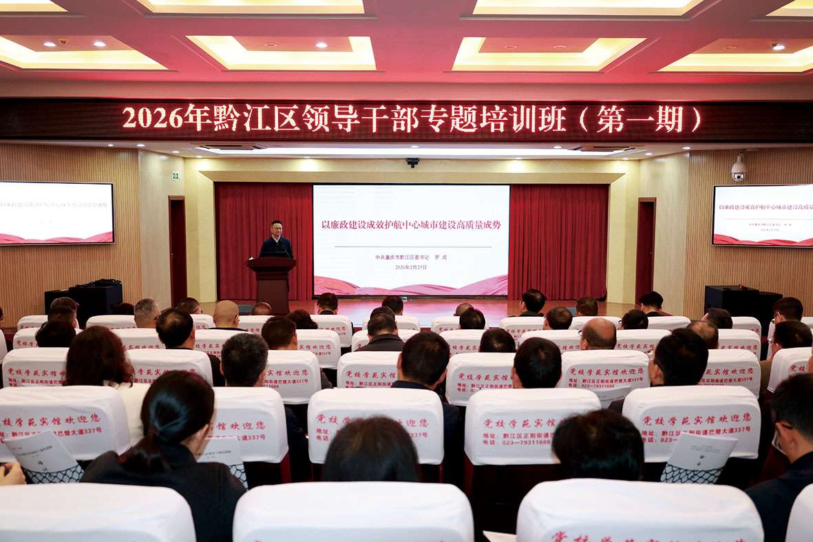 本报讯(记者 罗跃 文/图)2月25日,2026年黔江区领导干部专题培训班(第一期)开班,区委书记罗成以“以廉政建设成效护航中心城市建设高质量成势”为题,为学员们讲授“新春第一课”。区委副书记、区长骆高燕,区委副书记李泽玉,区委常委,区级领导同志出席。