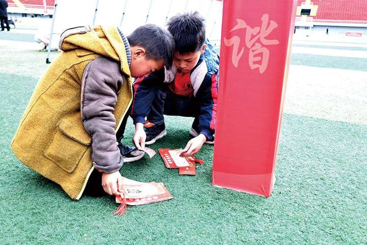 杨雪姣和瞿歆瑶是民族小学学生,得知当天举办灯谜会,便相约前来一较高下,感受这最后一波年味的福利。