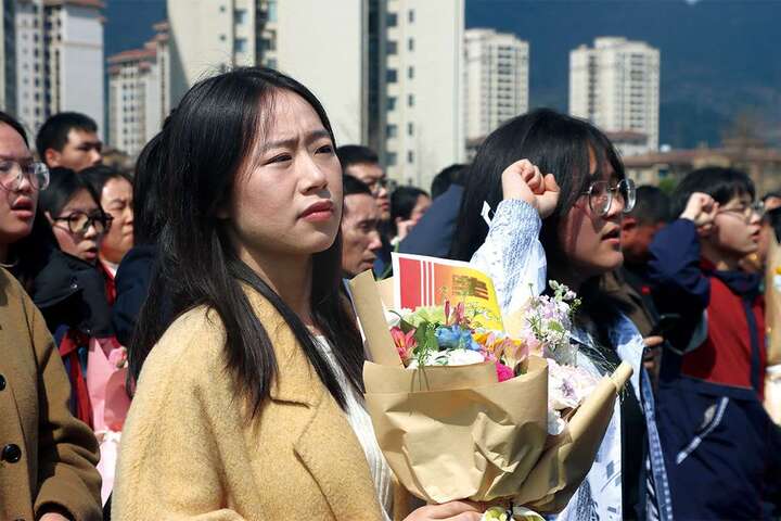 高三年级主任严义杰、家长代表李安周依次发言,传递师长期盼与家校温情。学子们向父母、老师与祖国三鞠躬,以最诚挚的礼仪表达感恩之心。