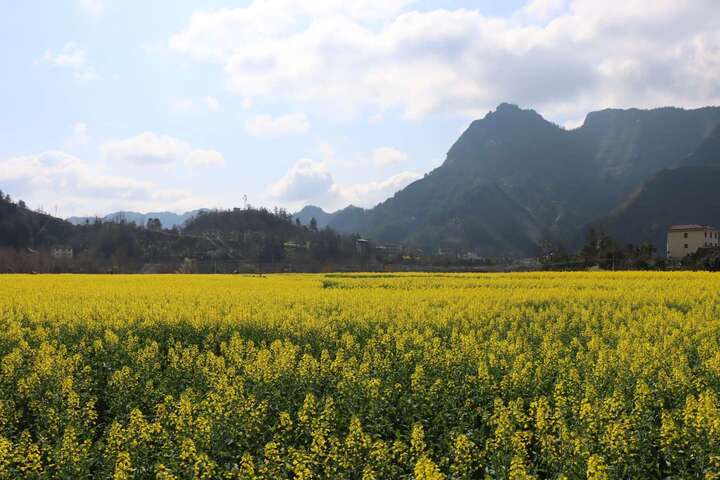黄金花海之所以“出圈”,还得益于其独特的地理位置。重庆市黔江区小南海镇与湖北省咸丰县大路坝区山水相连,这片最美的花海,恰恰位于渝鄂交界处。在这里,行政边界没有成为发展的壁垒,反而成了协同共赢的纽带。