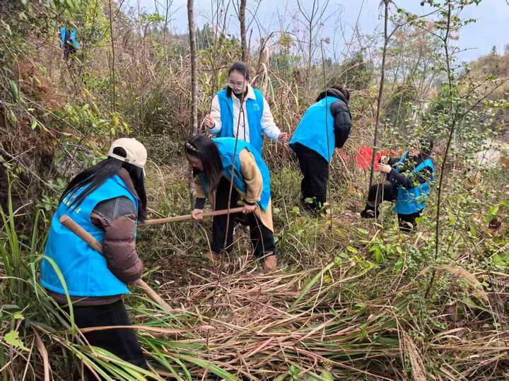 活动现场氛围浓厚,志愿者身着志愿服装,分工明确、默契协作,小心翼翼搬运树苗、精准挖坑、扶苗培土、夯土踩实,每道工序一丝不苟。经过一上午劳作,共栽种黄柏苗300多株,新栽树苗在暖阳下昂首挺立,为火石垭村增添新绿。