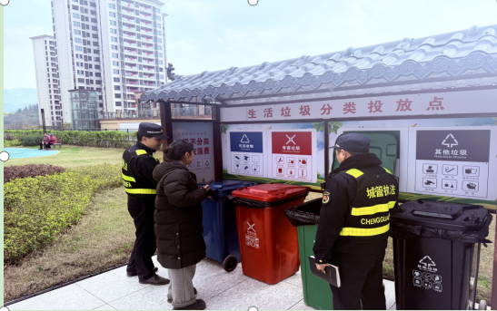 本报讯(记者 王安娜 通讯员 周君琳 文/图)3月12日,黔江区城市管理综合行政执法支队聚焦辖区物业小区垃圾分类落实成效,开展专项执法检查行动,以“查台账、看现场、强宣传、回头看”全流程举措,推动垃圾分类工作落地见效,守护辖区宜居环境。